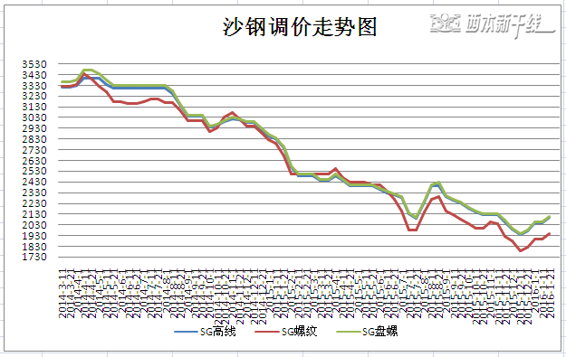 新干線訊:2016年1月21日,沙鋼在“2016年1月11日沙鋼出臺(tái)1月中旬價(jià)格政策”基礎(chǔ)上,出臺(tái)2016年1月下旬部分產(chǎn)品價(jià)格政策: