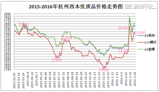 下圖為2015年2月25日-2016年3月25日杭州西本優(yōu)質(zhì)品市場(chǎng)價(jià)格走勢(shì)圖: