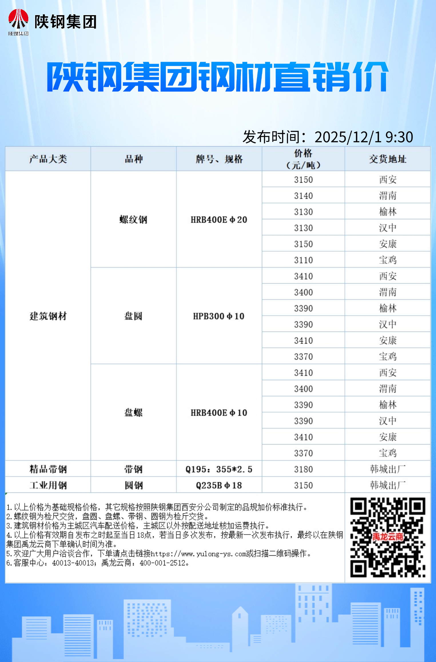 摘要:12月1日陜鋼集團(tuán)鋼材直銷價(jià)格信息