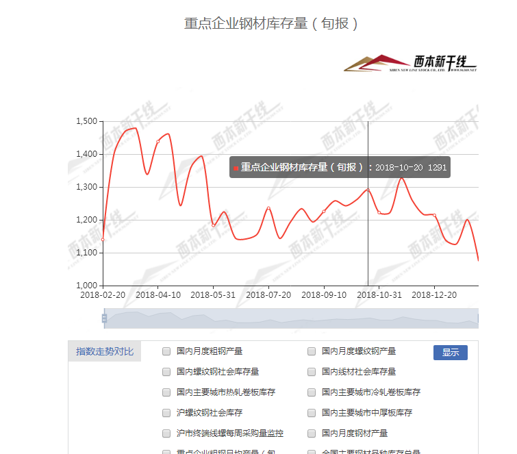 新干線訊 據(jù)中鋼協(xié)統(tǒng)計數(shù)據(jù)顯示,2019年1月下旬重點鋼企粗鋼日均產(chǎn)量為181.72萬噸,旬環(huán)比增加1.00萬噸,增長0.55%。截至2019年1月下旬末,重點鋼鐵企業(yè)鋼材庫存量為1074.17萬噸,旬環(huán)比減少125.74萬噸,降幅為10.48%。