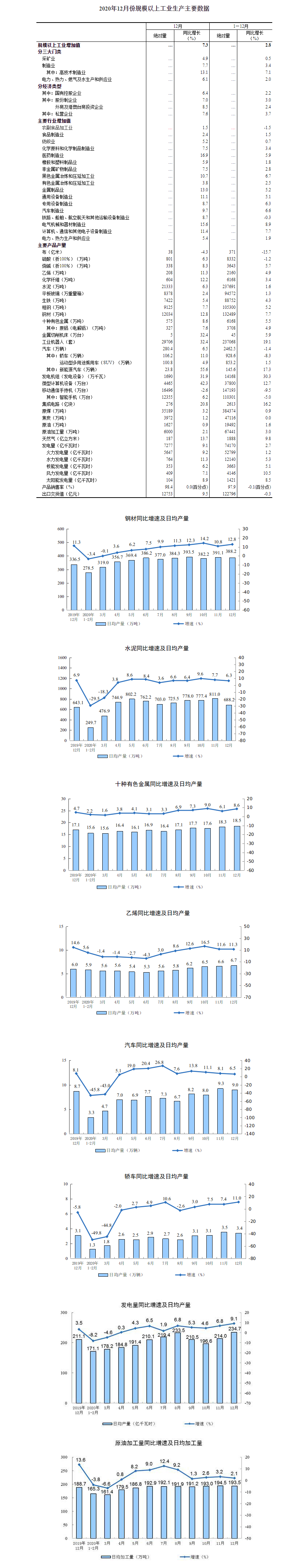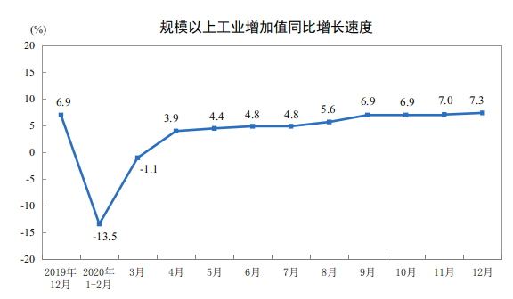 2020年12月份規(guī)模以上工業(yè)增加值增長7.3%