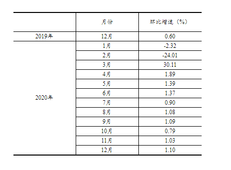根據(jù)季節(jié)調(diào)整模型自動修正結(jié)果,對2019年12月至2020年11月份規(guī)模以上工業(yè)增加值環(huán)比增速進行修訂。修訂結(jié)果及2020年12月份環(huán)比數(shù)據(jù)如下: