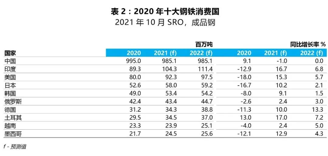 2021年,在大宗商品價(jià)格和國際貿(mào)易恢復(fù)的助力下,發(fā)展中經(jīng)濟(jì)體(不含中國)的鋼鐵需求繼續(xù)恢復(fù)。不過,最新出現(xiàn)的幾波疫情,再加上疫苗的低接種水平和國際旅游業(yè)的緩慢恢復(fù),都給發(fā)展中經(jīng)濟(jì)體帶來限制。2022年,隨著疫苗接種的推進(jìn),預(yù)計(jì)發(fā)展中經(jīng)濟(jì)體的狀況將會(huì)改善,但疫情將會(huì)給發(fā)展中經(jīng)濟(jì)體帶來長期影響,包括財(cái)政狀況的弱化和結(jié)構(gòu)化挑戰(zhàn)的累積。