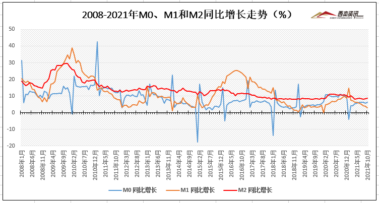 10月末,廣義貨幣(M2)余額233.62萬(wàn)億元,同比增長(zhǎng)8.7%,增速比上月末高0.4個(gè)百分點(diǎn),比上年同期低1.8個(gè)百分點(diǎn);狹義貨幣(M1)余額62.61萬(wàn)億元,同比增長(zhǎng)2.8%,增速分別比上月末和上年同期低0.9個(gè)和6.3個(gè)百分點(diǎn);流通中貨幣(M0)余額8.61萬(wàn)億元,同比增長(zhǎng)6.2%。當(dāng)月凈回籠現(xiàn)金781億元。