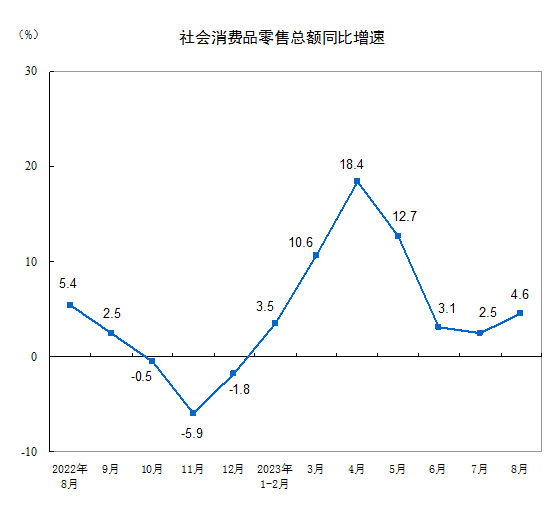 8月份社會消費品零售總額增長4.6%