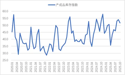鋼廠生產(chǎn)趨穩(wěn)回升,鋼廠去庫壓力仍存。10月份,由于需求端有所恢復(fù),加上對四季度政策端有一定預(yù)期,鋼廠生產(chǎn)意愿有所回升,長假后前期檢修的高爐逐步復(fù)產(chǎn)。鋼鐵行業(yè)生產(chǎn)指數(shù)為49.8%,環(huán)比上升4.1個百分點,結(jié)束此前連續(xù)2個月的下降態(tài)勢,顯示鋼廠生產(chǎn)活動連續(xù)放緩態(tài)勢得到緩解,生產(chǎn)量趨穩(wěn)回升。需要指出的是,盡管鋼市供需兩端都有所好轉(zhuǎn),但是需求端恢復(fù)力度仍弱于供給端回升力度,鋼廠產(chǎn)成品繼續(xù)處于累庫狀態(tài),產(chǎn)成品庫存指數(shù)為51.7%,雖環(huán)比下降2.3個百分點,仍連續(xù)3個月位于擴(kuò)張區(qū)間,顯示產(chǎn)成品庫存持續(xù)上升。結(jié)合來看,當(dāng)前鋼廠面臨較大的去庫壓力。