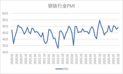 從中物聯(lián)鋼鐵物流專業(yè)委員會調(diào)查、發(fā)布的鋼鐵行業(yè)PMI來看,2025年10月份為49.2%,環(huán)比上升1.5個百分點,結(jié)束連續(xù)2個月環(huán)比下降態(tài)勢,行業(yè)運行有所恢復(fù)。分項指數(shù)變化顯示,鋼鐵需求有所恢復(fù),鋼廠生產(chǎn)趨穩(wěn)運行,但去庫壓力仍存,原材料價格高位運行,鋼材價格有所回落。預(yù)計11月份,鋼鐵需求先揚(yáng)后抑,鋼廠生產(chǎn)有所下降,原材料價格高位回落,鋼材價格低位回升。