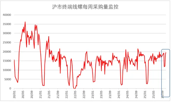 圖3 2020年以來滬市終端線螺每周采購量監(jiān)控數(shù)據(jù)變化情況