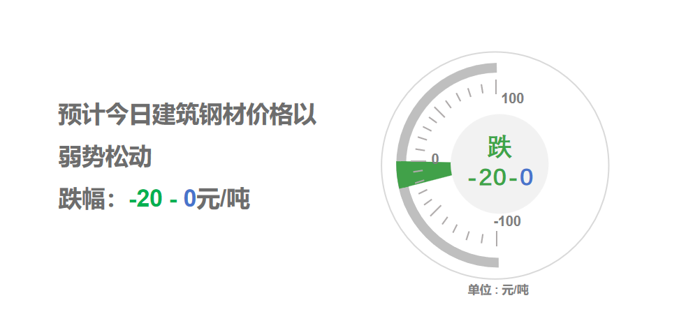 昨日開市,早盤期螺震蕩回落,少數(shù)鋼企價格下調(diào),終端需求有所放緩;午后盤面波動見跌,鋼坯報價小幅下跌,多地建筑鋼材價格小幅陰跌。夜盤期螺偏弱整理,北方降溫影響需求,唐山等地環(huán)保限產(chǎn),部分商家低價走量,市場操作謹(jǐn)慎等,預(yù)計,今日全國大部建筑鋼材價格弱勢松動,幅度-20-0?!疽走B資訊提供】