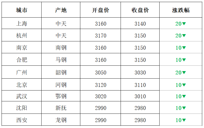 昨日開市,早盤期螺弱勢下跌,部分鋼企小幅下調(diào),終端需求有意放緩;午后盤面繼續(xù)下挫,鋼坯報價小幅下跌,多地建筑鋼材價格小幅再跌。夜盤期螺延續(xù)走低,部分鋼企虧損加重,北方天氣轉(zhuǎn)冷,需求環(huán)比減量,交投氛圍清淡,預(yù)計,今日全國大部建筑鋼材價格弱勢下跌,幅度-30-0?!疽走B資訊提供】
