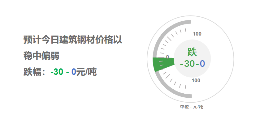 昨日開市,早盤期螺波動(dòng)調(diào)整,多數(shù)鋼企維持平盤,終端用戶采購(gòu)放緩;午后盤面弱勢(shì)下跌,鋼坯報(bào)價(jià)小幅見跌,多地建筑鋼材收市價(jià)小幅松動(dòng)。夜盤期螺低位震蕩,交投氛圍冷清,部分商家低價(jià)走量,焦炭第二輪提降擴(kuò)圍,成本支撐趨弱,但市場(chǎng)庫(kù)存偏低,部分商家規(guī)格不全,市場(chǎng)操作謹(jǐn)慎等,預(yù)計(jì),今日全國(guó)大部建筑鋼材價(jià)格穩(wěn)中偏弱,幅度-30-0?!疽走B資訊提供】