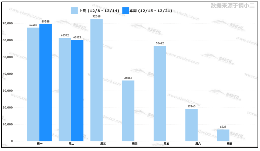 據(jù)鋼小二平臺樣本數(shù)據(jù),12月16日采樣全國工程需求量為60,121噸,環(huán)比上個交易日下降13%。